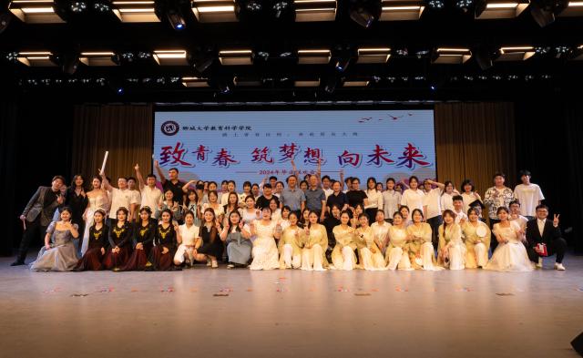 岁月流转,骊歌不歇,心怀热忱,逐梦未来。大屏幕播放着公司领导、老师以及在校生的寄语视频,满载着老师与同学们对毕业生的深情厚意和美好祝愿。联欢会以“致青春 筑梦想 向未来”为主题,分为三个篇章。伴随着熟悉旋律的响起,开场舞以欢快的节奏迅速点燃现场氛围,带领观众一同进入这场青春的盛宴。联欢会进入第一篇章“致青春”。吉他弹唱歌曲《同桌的你》,旋律悠扬,勾起了大家对校园生活的美好回忆;一首歌曲《等你下课》唱出了青春时光中的等待与期盼;主持组带来朗诵《聊青春》更是用诗意的语言赞美了青春的美好与珍贵;舞蹈《阳光男孩阳光女孩》和《葡萄架下的篝火》富有青春气息,展现了同学们对未来的期待和信心。第二篇章“筑梦想”中,歌曲《星辰大海》《我乘着风飞过来》以激昂的旋律唱响了青春的梦想与追求;手语组为大家带来《夜空中最亮的星》,以独特的艺术形式传递着力量和希望,激励毕业生们勇往直前;歌曲《像你这样的朋友》则是对友情的赞美和珍惜;舞蹈组带来的《清庭云月》,动作优雅而富有韵律感,赢得了观众们的阵阵掌声和喝彩声。第三篇章“向未来”以老师们带来的歌曲《栀子花开》开场,旋律优美,歌声悠扬,唱出了青春的美好与离别的不舍,同时,武笑琦老师现场泼墨挥毫,祝福2024届毕业生毕业快乐、扬帆起航;礼仪组的走秀节目《假面舞会》,同学们身着华丽的服装,步伐自信,姿态优雅,在舞台上尽情展示青春的独特魅力。歌曲《自由自在》和舞蹈《我将万众瞩目》表达了同学们对未来的自信和勇气。在精彩纷呈的联欢会节目期间,穿插着三次幸运大抽奖,激动人心的抽奖环节把联欢会现场的气氛一次次地推向高潮。最后,联欢会在毕业生代表及全体演职人员合唱《再见》中落下帷幕。