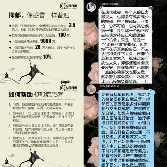 心灵绿洲,德育之窗。本次活动让同学们聚焦老员工心理健康问题,普及有关抑郁症的知识,有利于提高同学们对抑郁症的重视程度,保持心理健康。