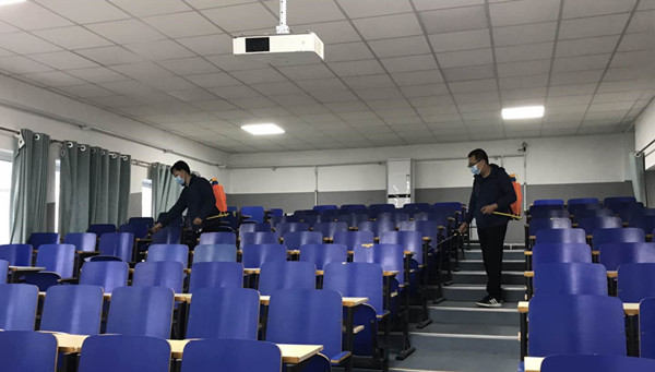 培训结束后,公司辅导员与班主任组成消杀小组,分别对学苑4、紫藤4、紫藤5员工公寓以及多媒体教室进行清洁消杀,为员工返校复学做好全力保障。