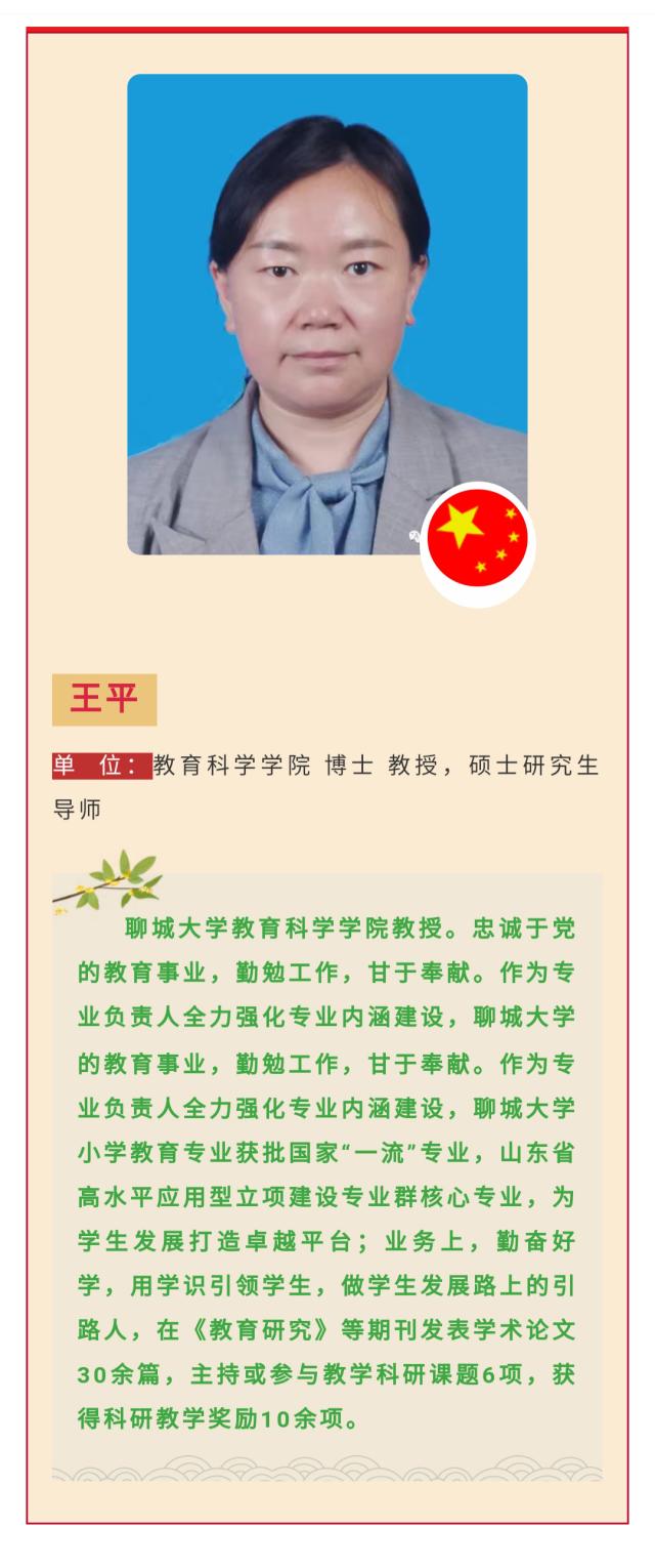 为深入贯彻习近平新时代中国特色社会主义思想、党的十九大精神和十九届二中、三中、四中全会精神,全面落实全国全省教育大会精神,生动展现公司教师立德树人、潜心教学的精神风貌, 倡导形成尊师重教的良好风尚,增强广大教师的职业荣誉感和神圣使命感,激励广大教师争做党和人民满意的“四有”好老师,根据《中共山东省委宣传部、山东省教育厅关于开展“2020 年度齐鲁最美教师”和山东省教书育人楷模评选活动的通知》(鲁教师函〔2020〕4 号)要求,经公司推荐、专家评审、结果公示、公司审批,beat365亚洲体育官方网站副经理王平被授予“2020 beat365亚洲体育官方网站教书育人楷模”荣誉称号,展现了新时代人民教师的光辉形象,进一步激励公司教职工立足本职,扎实工作,积极进取,无私奉献,争做有理想信念、有道德情操、有扎实学识、有仁爱之心的“四有”好老师,为建设国内一流区域综合性大学,培养德智体美劳全面发展的社会主义建设者和接班人做出更大的贡献。