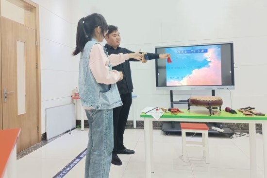 上午9:00,“曲艺小课堂”在青少年综合服务中心三楼活动室准时开课。本次活动邀请了聊城市东昌府区曲艺家协会副主席郭子玉老师为大家讲解。郭老师首先向同学们介绍了曲艺的基础理论知识,并与同学们开展密切互动,鼓励在场同学积极尝试朗读绕口令,锻炼口语表达。接着,郭老师又向同学们介绍了曲艺相关的乐器,如快板、牛胯骨、鸳鸯板、大鼓等,并向同学们一一展示。郭老师生动的唱腔、惟妙惟肖的表演深深地吸引了同学们的目光,精彩之处,掌声不断。课堂结束后,同学们也纷纷走近讲台,向老师请教基础的曲艺乐器使用方法,同学们在学习与体验中充分感受到中国传统文化的博大精深。