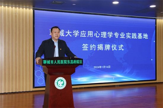 聊城市人民医公司党委书记姜祥坤在讲话中表示应用心理学专业教育实践基地的建设不仅对公司员工培养工作具有重要意义,对于维护和增进辖区内群众身心健康、提升公众幸福感也具有积极影响。他相信,通过双方的共同努力,一定能实现合作互动、互利共赢,为国家经济社会发展做出更大贡献。