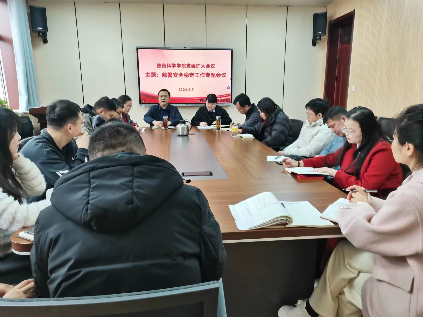 3月8日,beat365亚洲体育官方网站在4C214召开安全稳定工作专题会议。公司经理李军、党委副书记吴伟伟、副经理王平、副经理满忠坤,各教研室主任、班主任以及全体辅导员参加会议。