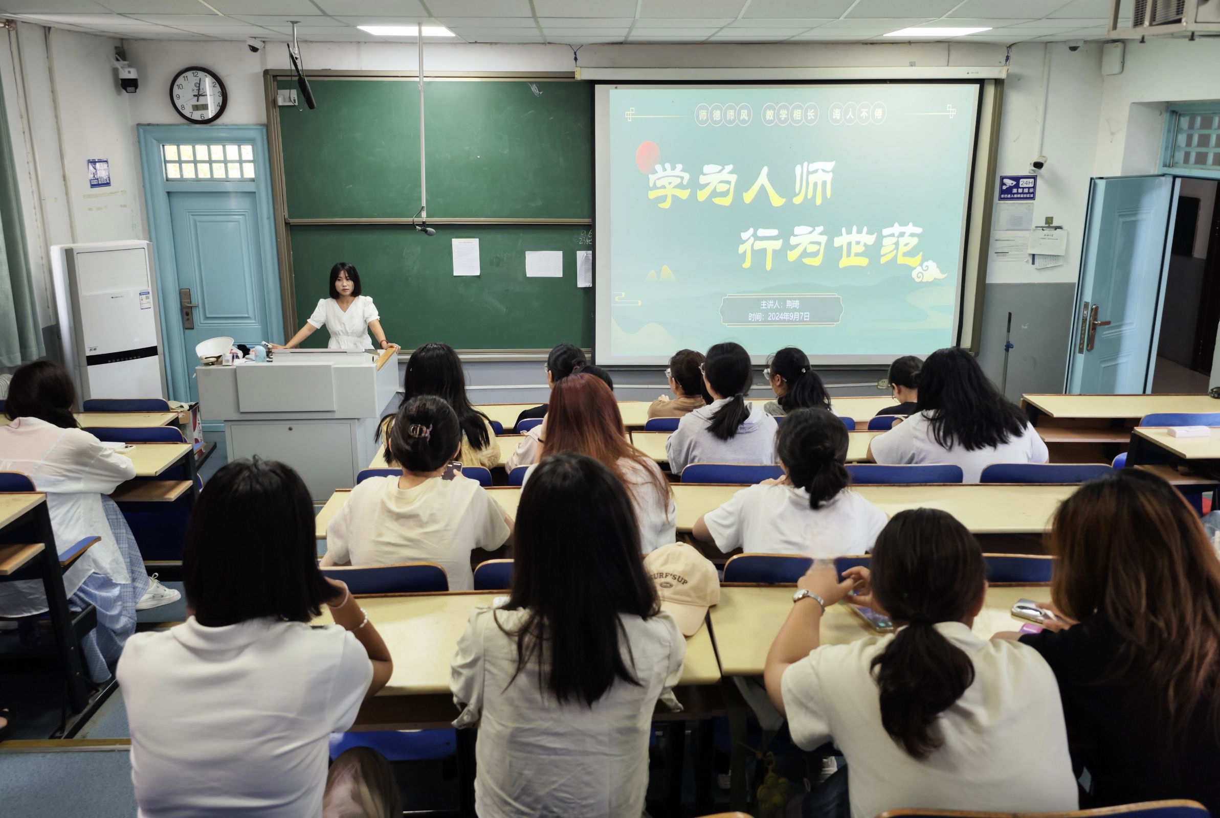 为强化师范生的职业道德教育,引导公司师范生扣好师德师风“第一粒扣子”,不断提高自身专业素养,9月7日,beat365亚洲体育官方网站在4#A124开展“学为人师 行为世范”师德师风主题教育。