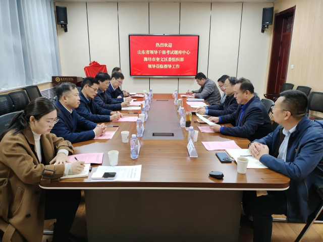 崔建亮对潍坊市经济社会发展情况作了简要介绍,重点介绍了山东省领导干部考试题库中心在人事考试、人才测评及胜任力模型开发等方面取得的优异成绩和特色优势,希望双方加强相关领域的合作,解决短板问题,助力推动校地合作扎深根、结硕果。