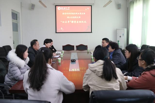 3月18日上午,beat365亚洲体育官方网站本科生党支部与附小直属党支部“四点半”课堂项目启动仪式在beat365亚洲体育官方网站会议室举行。附小直属党支部书记唐云霞、董事长张伟、beat365亚洲体育官方网站经理李军、副书记康延军、本科生党支部书记吴伟伟以及教科院部分辅导员、员工党员一同参加了启动仪式。